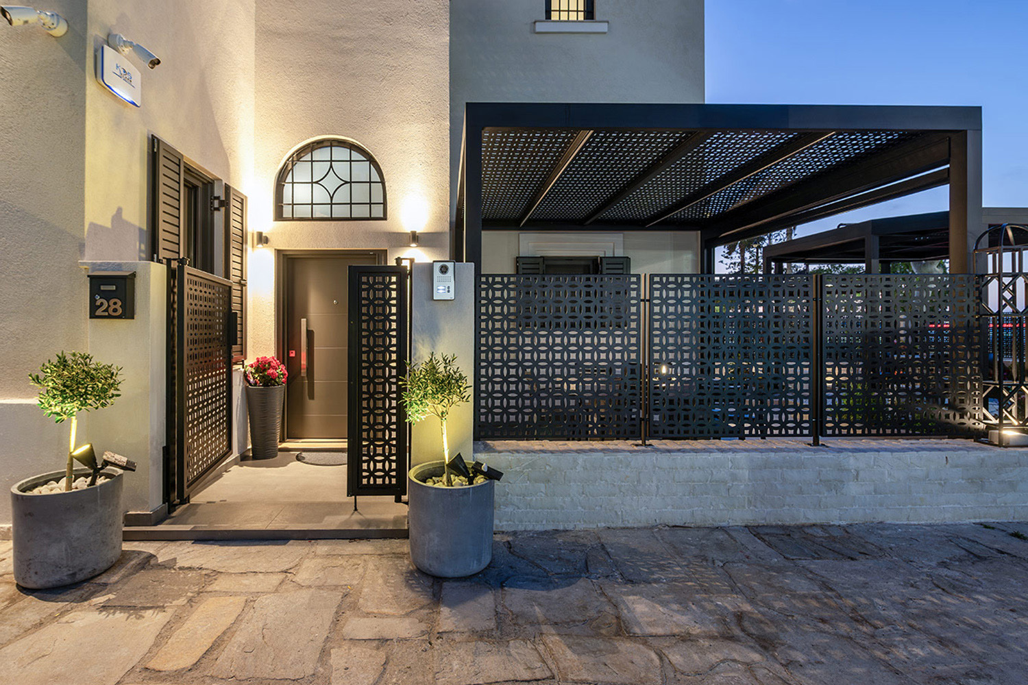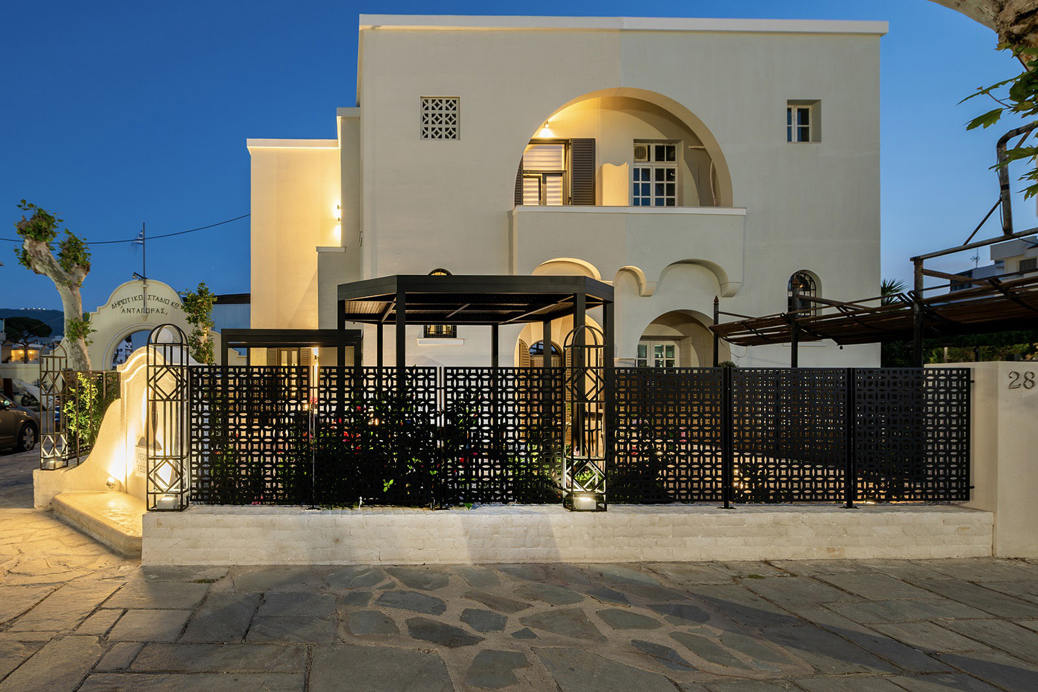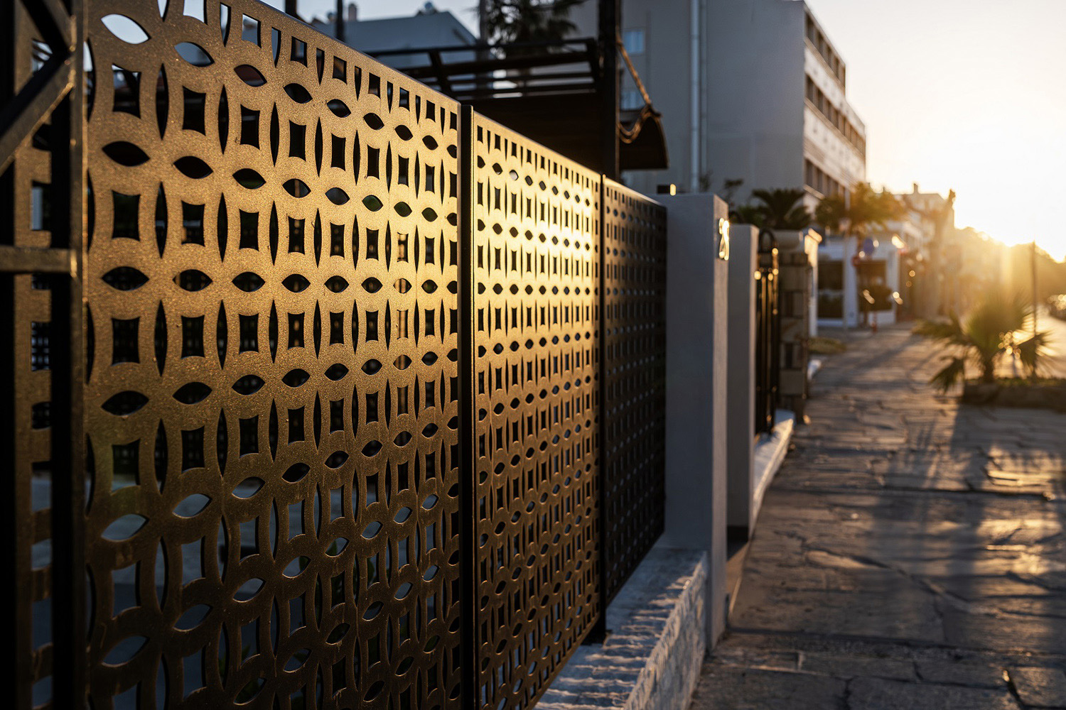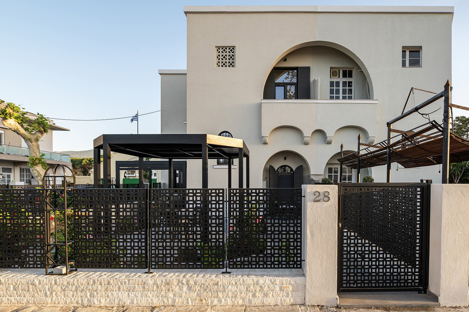 Περίφραξη και αυλόπορτα με laser κοπή, στο πλαίσιο της ανακαίνισης μονοκατοικίας στην Κω, εναρμονισμένη με το αρχικό ύφος και αρχιτεκτονική του κτιρίου