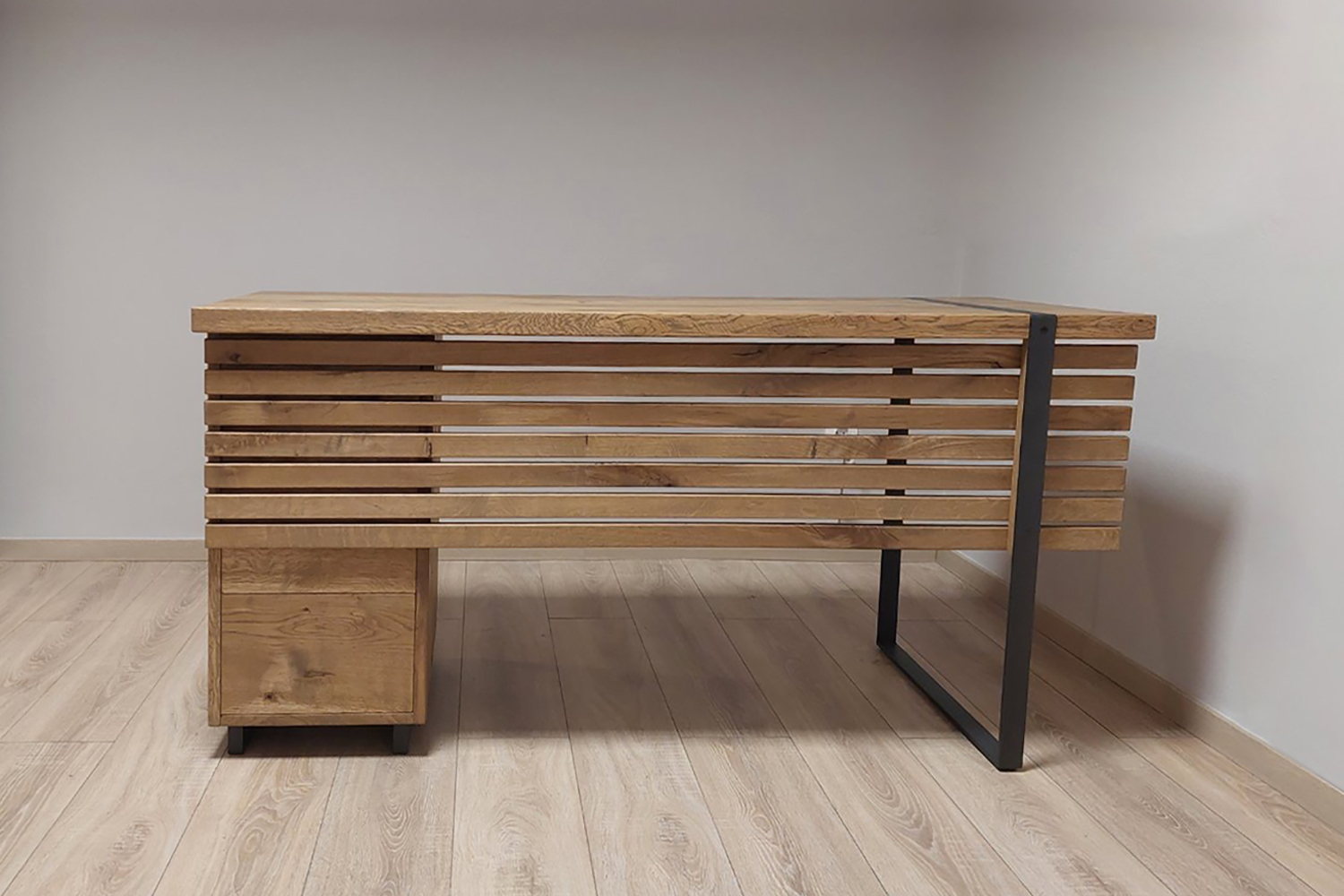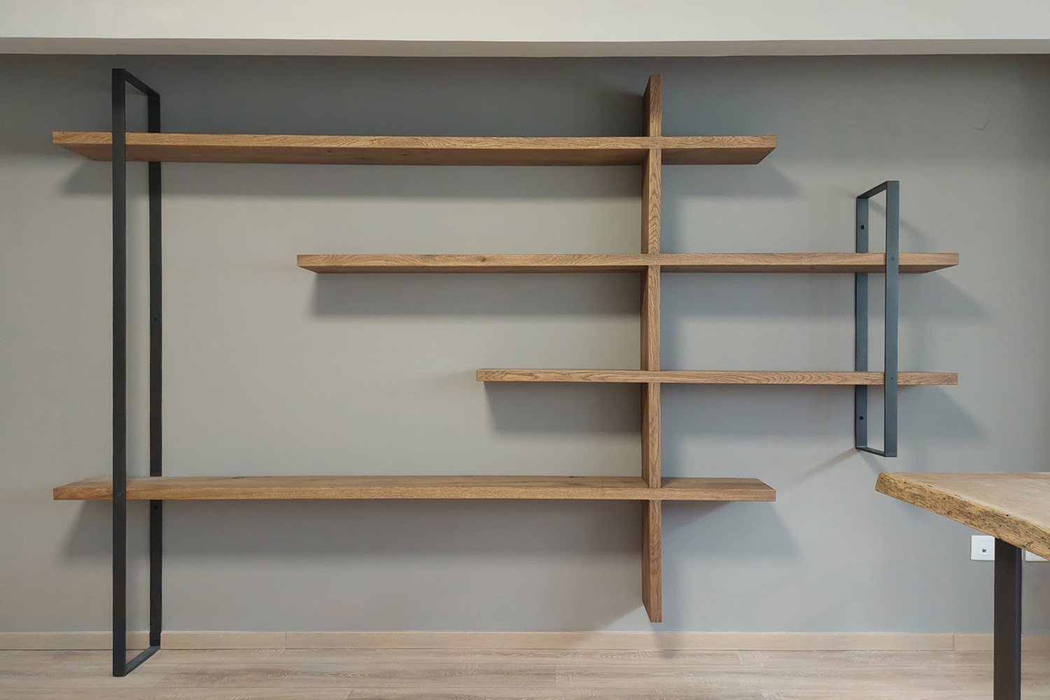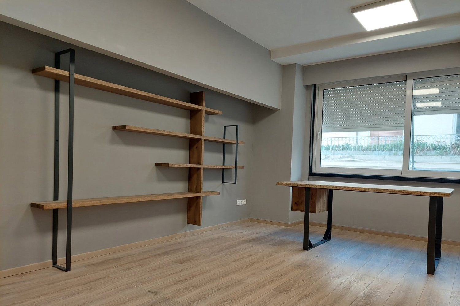 Έπιπλα custom made από μασίφ ξύλο δρυός με τεχνητή παλαίωση και μασίφ μεταλλικά στηρίγματα